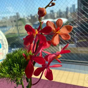 3月❶❽【モカラ】*浦添市西原 3種類の蘭を 人工交配させた育成種。 (バンダ属.アラクニス属.アスコセントラム属) 花びらはスリムで葉は多肉な扇形。 🌱ラン科 🌱モカラ属 🌅日の入…18:45 📷2023.3.31 pm 19:28 ⛅️