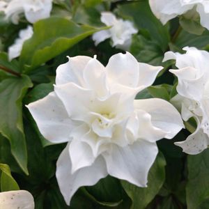 庭に咲いています 八重咲きオオバナノエンレイソウ