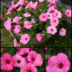 毎日、暑くて🥵 朝はAM4時起きして、お花の手入れをしていますが、終わる頃には滝汗の毎日。 ですが、綺麗に咲いている姿を見ると頑張れます😄 前回の満開からカットして2週間、再び咲き誇ってくれました💕💕🥰 1・タフチュニアのシルバーベリー 2と3枚目 ペチュニア レイシャドウ 4.ペチュニア スーパーチュニア ミニ ピンクとブルー 奥 の黄色🟡は、カスカディアスインディアンサマー 5.ペチュニア アマゾナスプラムコカトュー