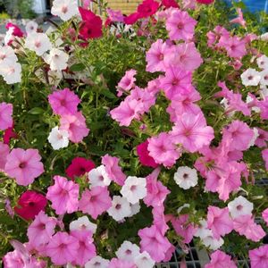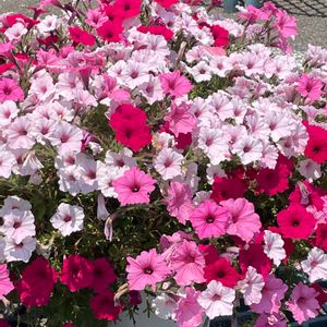 タフチュニア 💗⚪️❤️ あふれ咲きペチュニア 花をモリモリに咲かせる、雨に強いペチュニアだそう!😅🤗💕