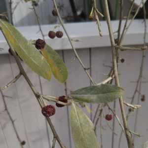 通りがかりの病院の花壇に グミ(赤黒色?)のような実?をつけた植物が❗️ 何の植物かお分かりでしょうか? 教えてください🙇