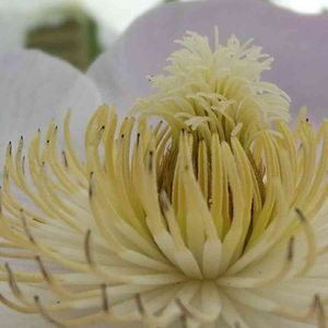 クレマチスの花芯 薄いピンクのクレマチス。 覗いたら、シベがモリモリ。 美しい世界を展開してる。 オシベの中から、メシベが盛りあがってる。 種が多いはずだね。