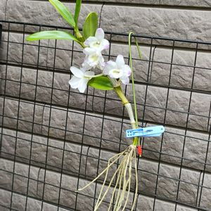 デンドロビウムのセカンドラブ・トキメキ。 咲きました〜😁 キュートな香りです💞 ちょっとずつピンクが入ってるのカワイイ! 洗濯バサミが情緒ないですが(笑)。バルブの太さと洗濯バサミのくぼみがピッタリで😅