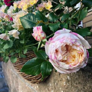 絞りのバラ🌹って、1輪1輪で色々な表情を見せてくれるから〜好き🥰💛🤍💕 そして、今日は午前中に昨日の大雨でバラとグレビレアの花柄摘みに忙しかった😅