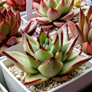 1️⃣お迎え多肉のアロエさん(^^) レッドドラゴン 前回のお迎えから1日後に違うホムセンで出会って…(^_^;) 2️⃣エケベリア ラウイ 昨年の冬越しでジュレて★になったけど、夏に再お迎えしての冬越しリベンジ中です。 昨年の冬は室内の窓辺でジュレたので、今年は外のビニール温室。 最近の気温上昇で温室内が蒸れ蒸れだったせいか、下葉がジュレ気味(^_^;) 今日からビニールを開けて管理です。 写真は撮らなかったけど、ピュアラブが手遅れでジュレてました🥲 上の方をチョンパして救済しましたが🙏 3️⃣アロエ ファイアーバード🔥🐦️ 室内管理中(^^) そろそろ外に出そうかな🤔 4️⃣エケベリア ラウリンゼ 若い葉の薄いグリーンは癒されます(^^)