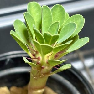 夫の植物 ユーフォルビア ギラウミニアナ こんな小さいのでも、植物育成ライトをガンガン当てて育てれば、2年くらいで分頭してくるよと教えてもらいました それは楽しみです🤭 買おう買おうと思ってまだ買っていない育成ライト どれを買ったら良いのやら おすすめとかあったら教えて欲しい〜🤗