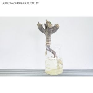 Euphorbia guillauminiana ユーフォルビア・ ギラウミニアナ。 入手時は単頭でしたが4つに分かれました。 そしてすっかり葉が落ちました。 春まで休眠開始です。