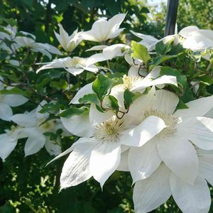 こちらもいい感じになってきた クレマチス〈ジェニー〉 ビチセラ系 薔薇や色んな下草と隣接して 植わってるから肥料が効いちゃって 大柄に💧