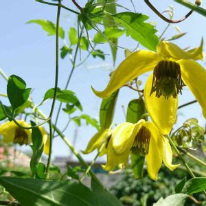 今日は夏だったわ~🌞 芋ソフトとハーゲンダッツのアイス2個食いという暴挙も仕方ない暑さ… 2年生くらいの株を植え付けて 1~2年のクレマチス〈オリエンタリス コーリー〉 黄色が強すぎるかな?とも 思ったけど緑モジャモジャな我が家 では丁度良いかな✨