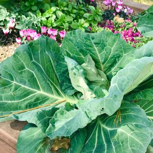 昼散歩♫から 公園の花壇にキャベツが植えて ありました。 ミニシクラメン💗と一緒に並ぶと ほのぼのします😊