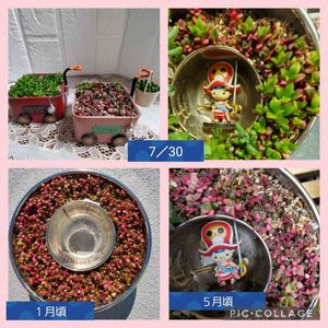 去年11月頃にお迎えした桜吹雪です🌸😊 桜吹雪は成長が超遅いとGSで教えて頂きました😊 冬の間は日中陽の当たる風通しの良いベランダに置き夜は家の中へ 春からは外に出しています。 1つが超小さいですが根付だったので購入。根が土に付かない苗は風で飛ばされたり★になったりと段々少なくなってしまいました😭 でも残った桜吹雪は少しずつ成長してます。 リースの上の方が中々根付きが悪く風で飛ばされたりしてまた減ってしまっているので小さい苗をリメ缶に移しました😊 桜吹雪のリースを作りたかったのにな~😂 初心者🔰には難しい〰️😅 でも1年見てきたので今年の秋にまた挑戦しようかな🙄