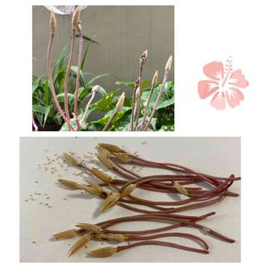 梅雨が明けました🌱 長い夏が始まりますね☀️😱💦 桜吹雪の花をやっと見る事ができました🌸✨🙌ヤッター 今日の14時頃です🌸 右のピンクは先日見そびれたものだけど種になるのね🌱 まだ幾つか蕾が上がってるので楽しみ~🌸💗😊💓🎶