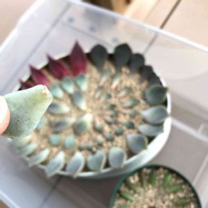 薄氷は葉挿しの発芽率9割超えだと思ってます。 薄氷だけがどんどん増える。😆 そして丈夫。 夏越えたのに、長雨で黒くなってしまったレッドエボニーをダメ元で…。 出てきてーー💦