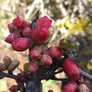 ボケの蕾 鉢植えのボケ。 昨年より多くの蕾がつきました。 開花が待ち遠しいです❣️