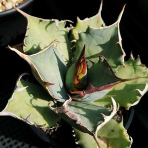 阿修羅 新しい葉はワックスの乗りも良く、青に見えるほど👀✨ 成長点に近い棘もようやく黒くなり始めて、強さも戻ってきた☺ 長かったけど、ここからが作り直し💪すこーしだけ辛くしよう☀ ま、あと6枚ほど展開したら下葉とお別れでちょん切られるけどね✂️🤣 才能はありそうだから天芽は良い子が出て来そう(*´ 艸`)❤