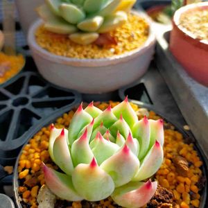 おはようございます(*^^*) あちこちでヒメちゃんが咲いています🌼 昼夜の気温差が大きいのか、多肉さんたちが良い色になっています。