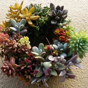 以前作ったリース♪… スカスカになった隙間に ちょっとずつ植えたので バランスがイマイチ…(˘ー˘💧) 午後から☀たので日光浴♪ 紅葉して〜 (๑و•̀Δ•́)وfight! マリウスさん 早速タグ🔖使いますね╭( ・ㅂ・)و グッ !