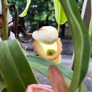 ネペンテス ベントリコーサ。 ウツボカズラの中でも耐寒性が強く、まだまだ外で元気にツボをつけています。