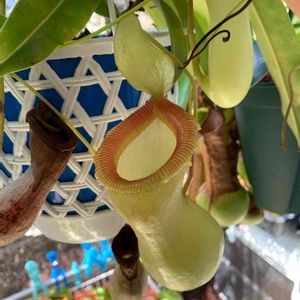 ネペンテス ベントリコーサが沢山袋をつけています♬♬。 来週は箱根湿生花園の食虫植物即売会ですが、ワクチン予約と重なって行けそうもありません😭。