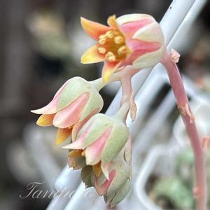 お花記録です。 「オレンジドリーム」 かなり伸び伸びになってますが…💦 今まで「セデベリア」だと思っていたのですが…(そう書いてあるサイトが多い) お花の感じがほとんどセダムなので、本当にセデベリアなのか?? と思って調べてみたら、 スプリングワンダー と 品種不明のセダム の交配種でした。 つまり、セダムだったんですね! スプリングワンダーが入ってるからこんなに伸びるんだ、納得しました…😅 どうも、最初は「セデベリア」として紹介されたようで… だからセデベリアって書いているサイトが多いのかな。 「Robert Grim」という名前が正式な品種名としてICNに載っています。 (※「Bob Grim」さんという方が作出したと書いてあります) が、調べていたら… セデベリアの「樹氷」によく似ているものが「ロバートグリム」という名前で売られていることがあるようで…、 (樹氷より少し大型らしい?) 私が調べた限りでは、オレンジドリームとはあんまり関係はなさそうなんですけど、いったい何の取り違いなのでしょうか…?? 調べれば調べるほど訳がわからなくなる、多肉あるあるです(笑)