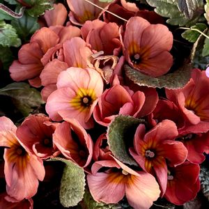 ① 黒葉でシックな、プリムラ スモーキー 以前(1/4)投稿した濃いピンクのお花の他にも、赤、オレンジなどありましたが、私がグッときたのはこのくすんだテラコッタカラー。 イイ子見つけた〜♪とバイヤーさんに見せに行くと、あの中からコレ選んで来る人ってなかなかいないよと。(良い意味に受け取りますよ😁) 単体ではなく何かとあわせて植えたくて、店内をぐるぐる。 ② バラ咲きジュリアン ショコラ 2年振り💓 今回はテラコッタに合わせてよりくすみカラーをチョイス。 ③ くすみカラーの寄せ植えができました♪リーフのベロニカはバイヤーさんのアドバイスで(ヒントはくれるけど答えはくれない師匠です😂)