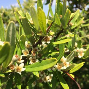 満開🎶 ピラサンカの赤い実からは 想像出来ない白い花ですね👋🏻