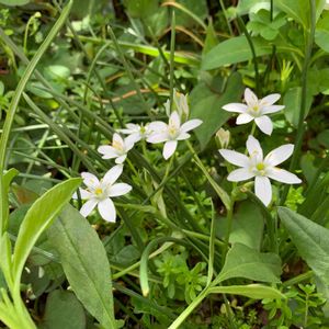 植えた覚えがないんですが庭のあっちこっちで咲いています。 葉っぱは細いです。 これはなんでしょうか??