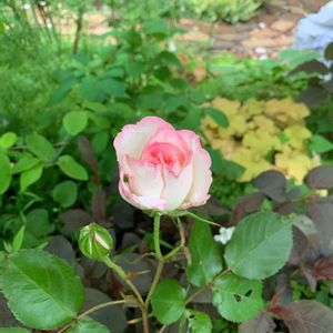 ロイヤルジュビリー やっと咲きましたが植え付け場所が気に入らなかったのかこの春は一輪だけです😅