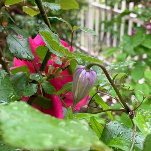バラ(の蕾)とクレマチス クレマチス開きました💕