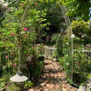 昨日の風は酷かった〜😱 アーチのバラがたくさん咲いています😊 植え付けて2回目の春🌹 これからもモリモリ育ってほしいです🎵