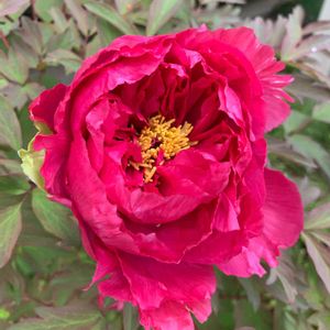 ボタン、咲きました!!🎉 日が出てたらもっと鮮やかな色で写せたんだけどなー😅でも、元気をもらえる赤です😊