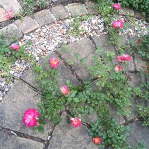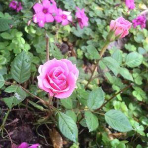 今年最初のばら開花はミニばら。地植えしてます。 まわりの花が目立ってて、いつもミニばらは目立たないから植え替えないとと思ってます。