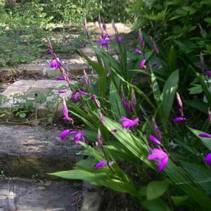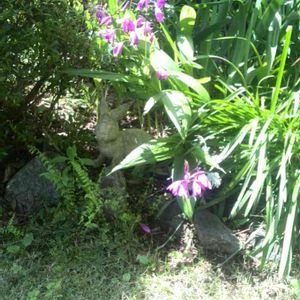 そよ風ステージ前にシランがさいてます。 ホントなら娘がここでアイドルステージを披露してくれるのですが、冬の間の誘引サボり、つるバラが占領してます。。 反省。(._.)
