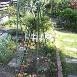 風が強いのでトマトの支柱を立てました! これでいいのかな? 自己流です。