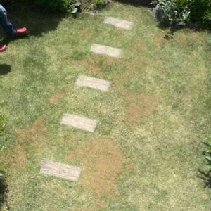 目土をいれました。よくとおる場所はへこんでいたので。目土28L では全然足りないので、追加で買わないと。
