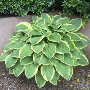 玄関のホスタ、冬に鉢まししたのですごいぼりゅーみーになりました。