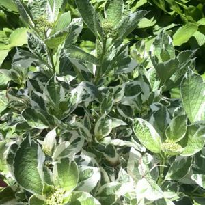 ふいりあじさいにつぼみがたくさん。それにしてもグランドカバーのぎぼうしがスゴい繁り、お手上げ状態です。