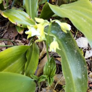 我が家の花 エビネ オモトの葉とチューリップの葉に挟まれてちょっと可愛そう😳😳😳