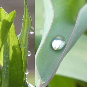 「雨粒」 昨日の夕方から深夜まで ずっと雨☔️が降り続いていました。 今朝は、早朝より暖かな晴れ☀️。 葉っぱたちには、昨夜の雨粒が❇️キラリ✨