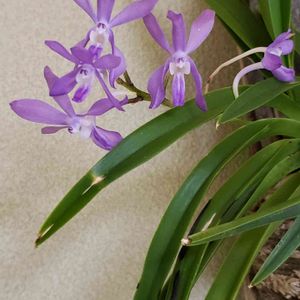 ❁. 。ヨネザワラ ブルースター。.❁ とっても美しい薄紫色の花を咲かせる ヨネザワラ ブルースターのご紹介🦋 細くしなやかな茎と 透き通ったブルー系の花が 可憐で美しいランです✴︎ バンダ属、リンコスティリス属、ネオフィネティア属の 3属を掛け合わせた交配系の洋蘭です𓍯 お花はほのかに芳香性があり、 甘く爽やかな香りが楽しめます♡ 夕方になるにつれよく香りますよ💙 *育て方* 暖かく日当たりの良い場所で管理してください。 夏場は半日陰の涼しい場所へ。 冬の水やりは霧吹きで葉水を行ってください🌱