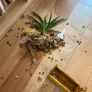 落下したヨネザワラ 水槽の水替え後、疲れながらも鉢の水やり中 棚に置くのが甘くて落ちて分解 何か準備しないといかんが まあバンダみたいなもんなんで ちょっとくらいは放ってても大丈夫と とりあえず水やり優先 集中力が途切れると事故が起こる 外は風も凄いし他になんもないといいけど