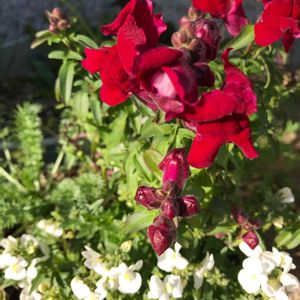 おつとめ品の キンギョ草と白いネメシア 実は、キンギョ草は 何色なのかわからず 💁♀️赤系みたいです。 で買って来たもので、やっと咲き出しました。 真っ赤な金魚だったとは〜😁 でも、この色気に入ってます❣️