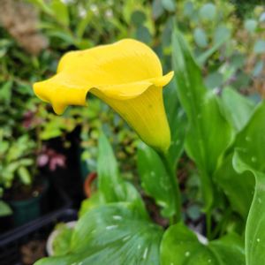 ①黄色のカラー 昨年お迎えしてダメになってしまったと思っていたら一つだけ咲いていました。 ②ルシェルブルー ピンク寄りで咲いています。 ③原種アルストロメリア 独特の色ですが可愛いお花です。 ④アガパンサス 今年も綺麗に咲いています。