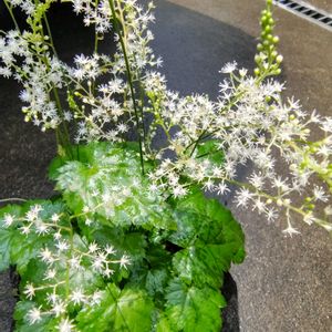 ①ヒトツバショウマ 細かい白いお花が可愛くて涼しげです。 ②シャルム 花友さんにいただいたバラ毎年綺麗に咲いてくれます。 ③クレマチス オブスキュア 3年前に小さな苗をいただいてやっと咲いてくれました。可愛い