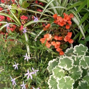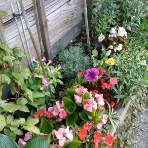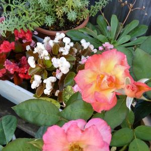 こぼれ種で咲いているペチュニア 挿し木のベゴニア 可愛いです🌺🤍🌼☺️