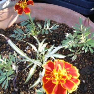 じいじにもらった マリーゴールドの苗 花咲き始めました🤗