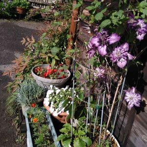 以前緑色の花を入れたクレマチス 色変わってもりもりです💕