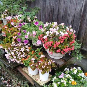 玄関前の花並べです