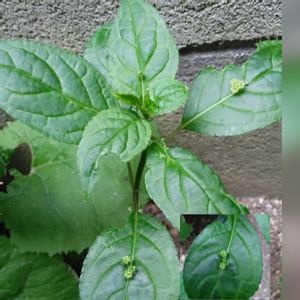 なんだか 解りますか?🌱💚 葉の上に御花が咲いております。 連投でご免なさい🙏 ご近所の花友さんが 届けて下さいました。 花瓶で楽しみます。 さし芽🌱にも してみます。