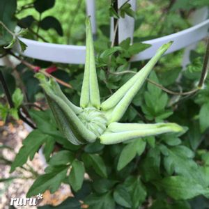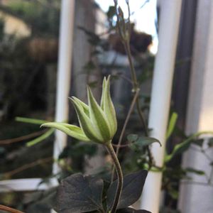 お庭のクレマチスちゃん(白万重orテッセン)蕾を見つけてからどのくらいたったかしら?なかなか進まなーい
